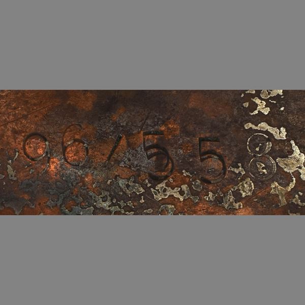 Originale in rame intagliato con decorazione a spugnatura in argento e oro.