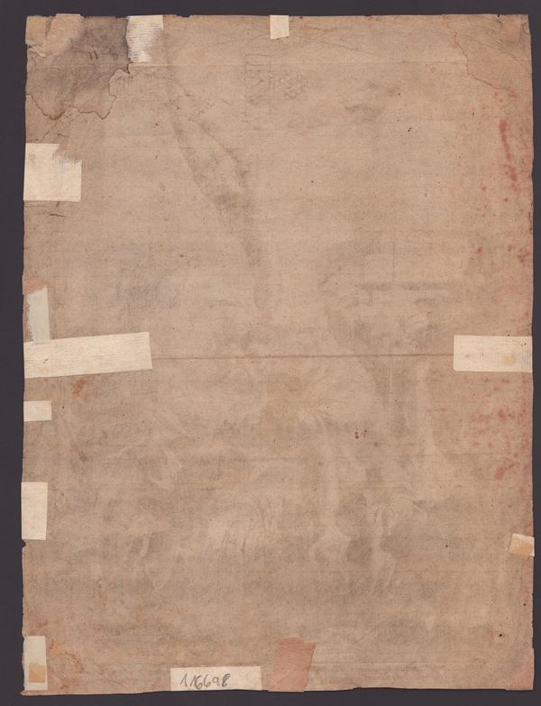 Bella impressione su carta vergata sottile con filigrana. Foglio in discreto stato di conservazione, con vari restauri, macchie e tracce di piega.