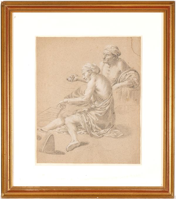 Matita e gesso bianco su carta bruna vergellata, 380 x 315 mm. Con cornice