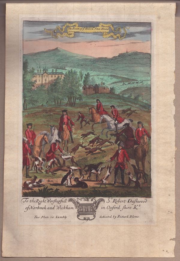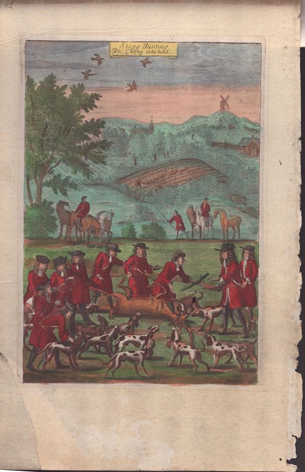 Lotto di quattro incisioni tratte da 'Gentleman's Recreation' di Richard Blome. Bulino, 400 x 255 mm ca. (cad. foglio).