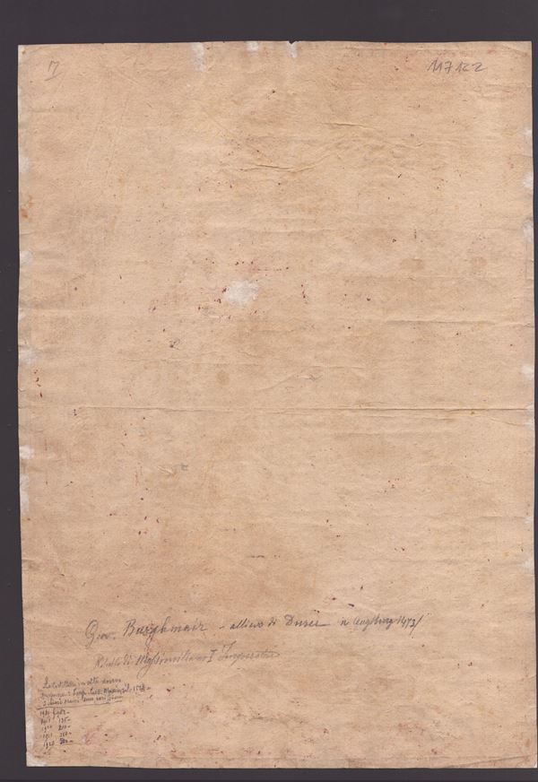 Xilografia, 388 x 272 mm. Impressione su carta vergata, esemplare controfondato. Con segni di fioritura.