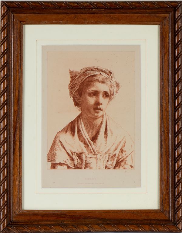 Acquaforte ad inchiostro color sanguigna, 295 x 200 mm ca. (foglio).