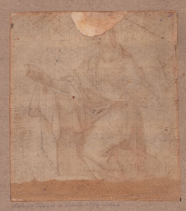 Penna, inchiostro bruno, acquarello e tracce di sanguigna su carta vergata, 170 x 150 mm. Marchi da collezione di Pacini (ca. 1860-1880) (L.2011) e Carlo Prayer (L.2044)