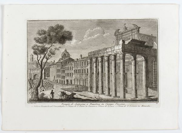 Lotto di 20 incision i tratte da Raccolta Delle Più Belle Vedute Antiche, E Moderne Di Roma. Acquaforte, 315 x 430 mm (cad. foglio).