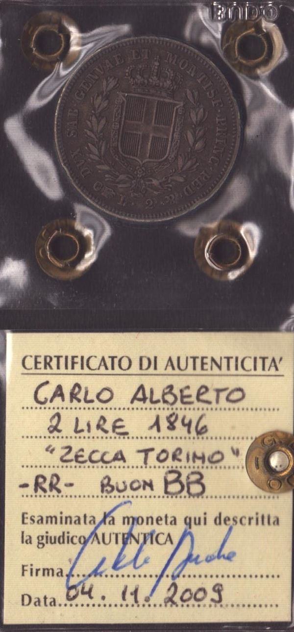 REGNO DI SARDEGNA. Torino. Carlo Alberto (1831-1849). 2 lire 1846. Ag