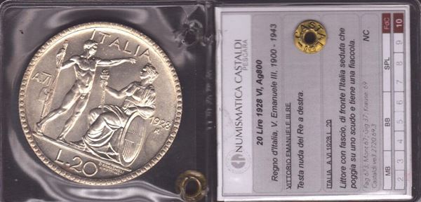 REGNO D'ITALIA. Vittorio Emanuele III (1900-1946). 20 Lire 1928. Ag (15,01 g; 35,63 mm)