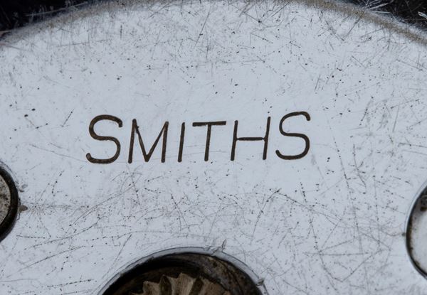 Cassa in argento 925/1000 con smalti guilloché nei toni del blu, quadrante bianco e dorato con numeri arabi e sfere luminescenti riportante le iscrizioni "8 Days - Made in England". Nella parte posteriore della cassa "Smith".