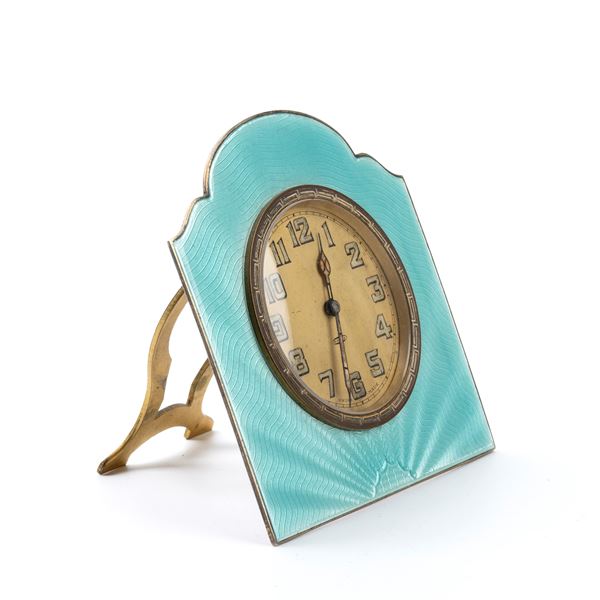 Orologio da tavolo Art Déco in argento e smalti, Birmingham, 1929