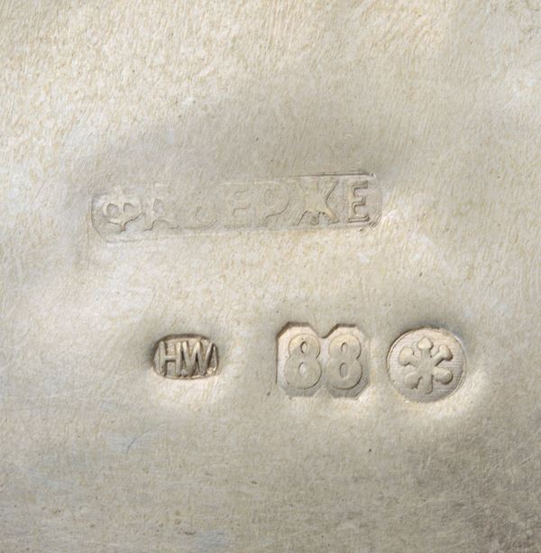 Punzonato con i marchi per l'argento al titolo di 88 zolotnik (916/1000) in uso a San Pietroburgo con Fabergé in cirillico e il marchio del maestro Henrik Wigström. Rimessa delle ore e carica a chiave.