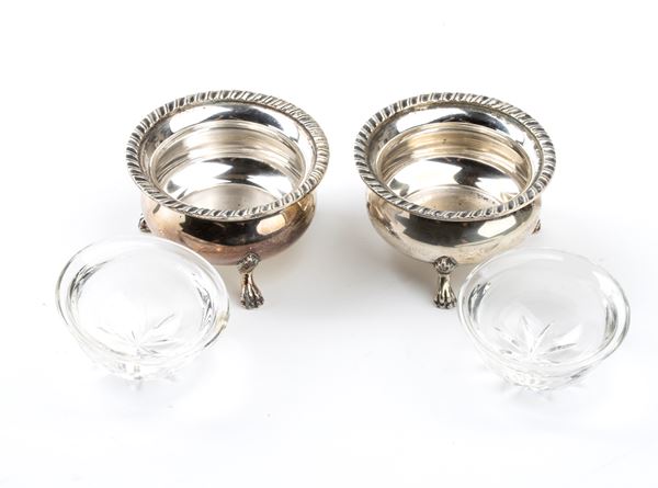 Coppia di saliere italiane in argento e vetro, Inizio XX secolo