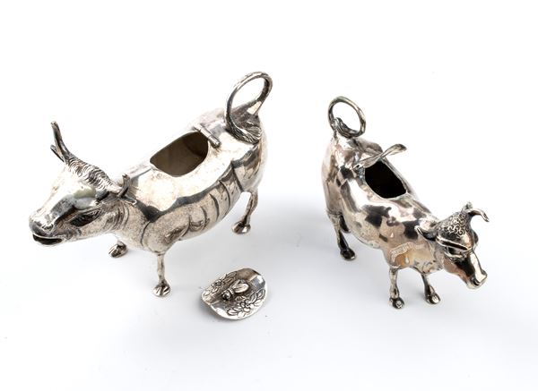 argento 925/1000, sagomate a forma di mucche con coperchi incernierati