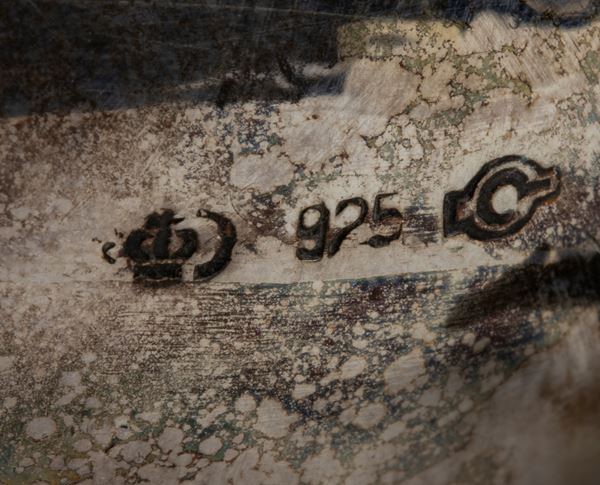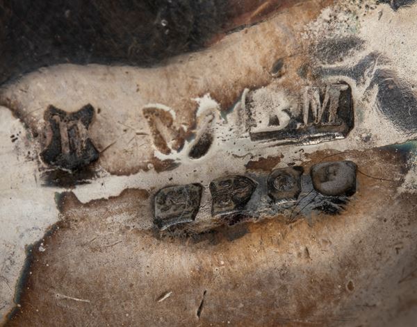 a) marchi in uso ad Hanau, Germania, argentiere Ludwig Neresheimer & Co, con il marchio dell'importatore Berthold Muller e conla serie completa dei marchi di importazione a Chester nel 1899-1900.