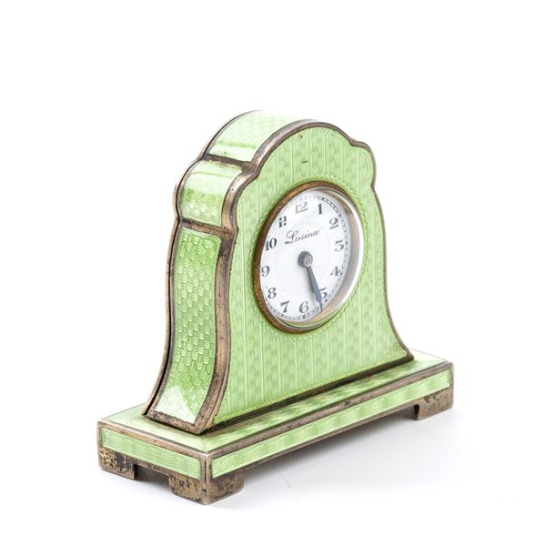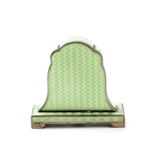 Orologio da tavolo Art Déco in argento e smalti, Svizzera, anni '20 - '30