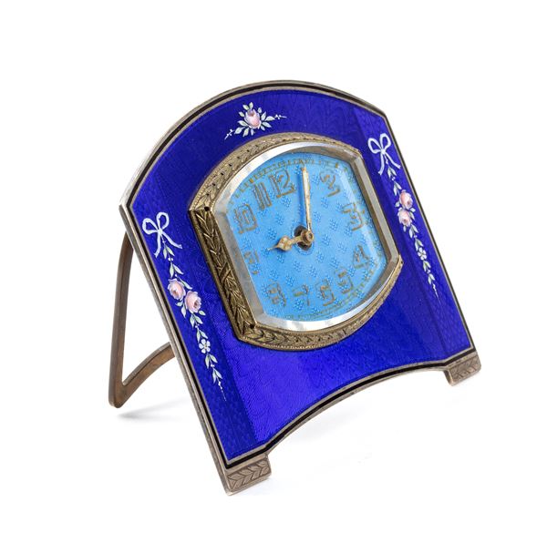 Orologio da tavolo Art Déco in argento e smalti, Svizzera, anni '20 - '30