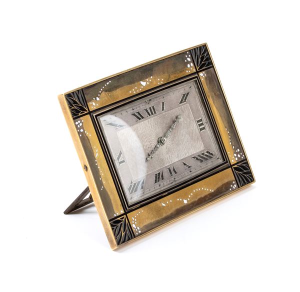 Orologio da tavolo Art Déco in argento e smalti, Francia, anni '20 - 30