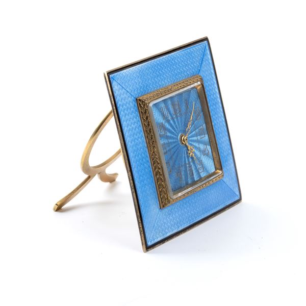 Orologio da tavolo Art Déco in argento e smalti, Svizzera, anni '20 - '30