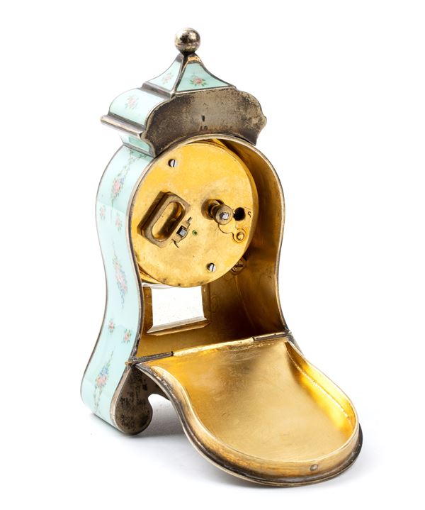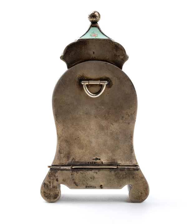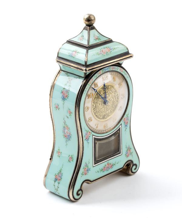 Orologio da tavolo Art Déco in argento e smalti, Svizzera, anni '20 - '30