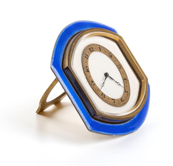 Orologio da tavolo Art Déco in argento e smalto guilloché, Birmingham 1925
