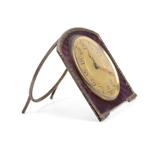 Orologio da tavolo Art Déco in metallo dorato e smalti, Anni '20 - '30