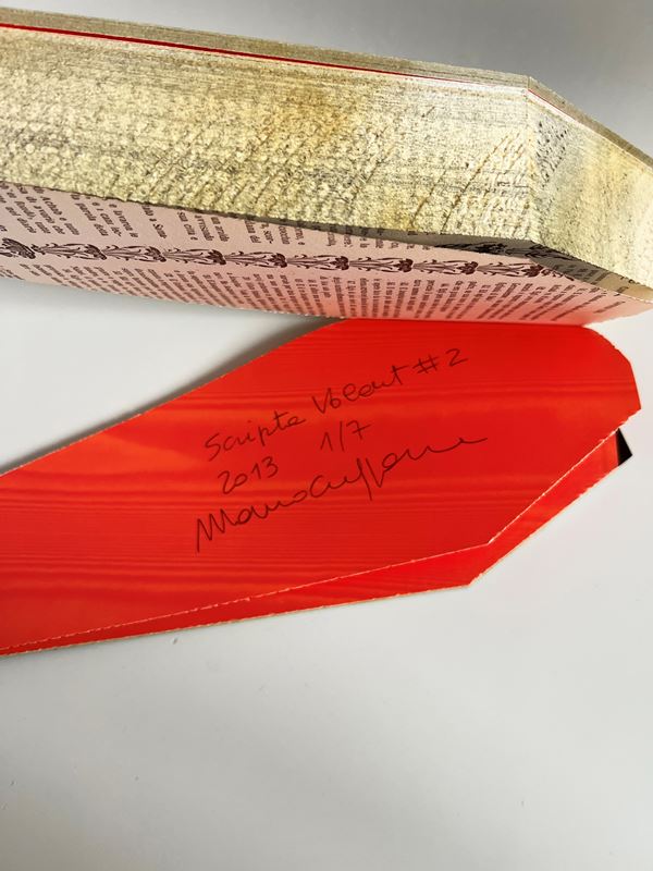 L'opera fa parte del ciclo “Scripta Volant”, composto da cinque libri tagliati, a forma di bara, con una sega circolare: La Bibbia, la Torah, il Corano, il Capitale e il Mein Kampf. La bara è la metafora estrema di come ci confrontiamo con il nostro passato e il nostro futuro. Con la crisi delle ideologie e delle religioni cosa ci resta oltre all’elaborazione del lutto o all’oblio?
