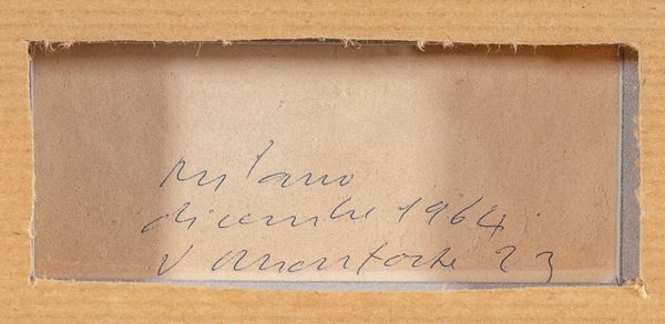Firmato in basso al centro: L. Fontana. Datato al retro: Milano, dicembre 1964