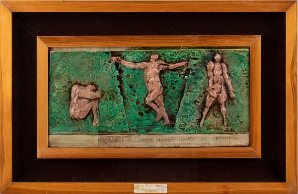 Bozzetto in terracotta per il monumento al Corpo di Liberazione dell'Esercito italiano in mosaico di pietre e ferro contorte a Sant'Angelo in Vado (Pesaro), realizzato in collaborazione con il fratello architetto Francesco Sassu. Inaugurato da Sandro Pertini ("Morirono perché i nostri figli nascessero liberi")
