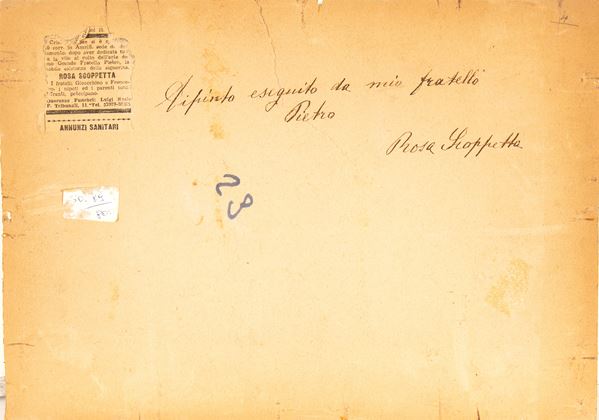Al retro dichiarazione di autenticità della sorella del pittore Rosa Scoppetta