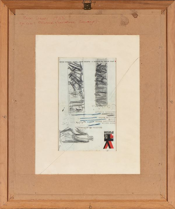 Firmato in basso a destra: Sironi. Al retro timbro della Triennale di Milano e firma in alto a destra: Sironi