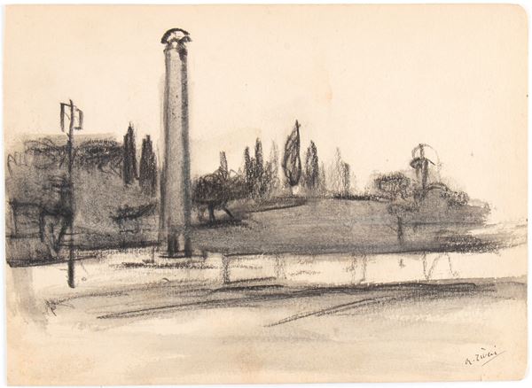 Lotto di due disegni di paesaggio
