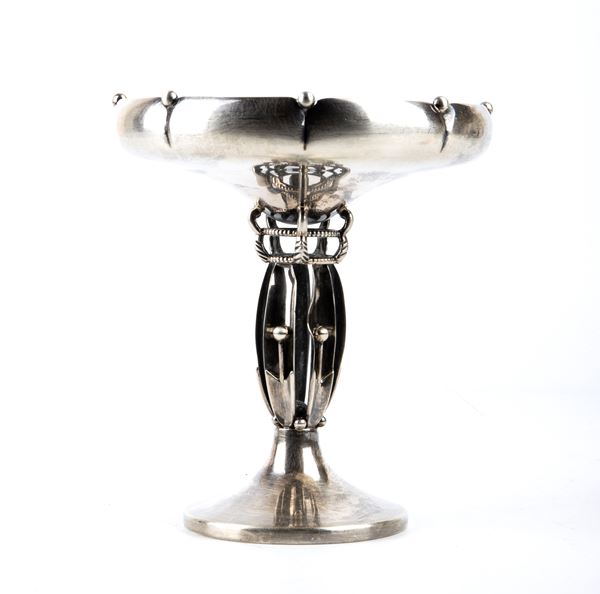 di forma circolare, con fusto a decori fogliati stilizzati.