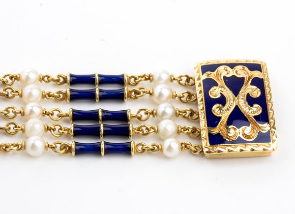 Bracciale in oro, perle e smalti