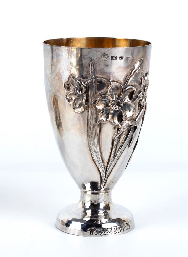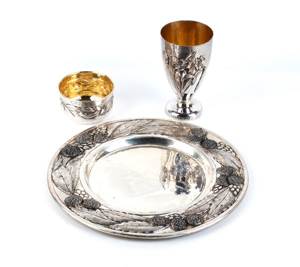 Servizio italiano composto da 12 piatti, 12 bicchieri e 12 coppette in argento, Firenze, XX secolo
