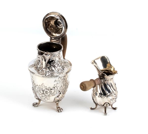 Caffettiera e lattiera inglesi in argento, Chester 1895, Londra 1903