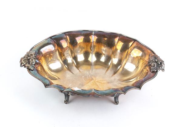 di forma ovale sagomata con manici con decorazioni di viti. Piedini a motivi fogliati.