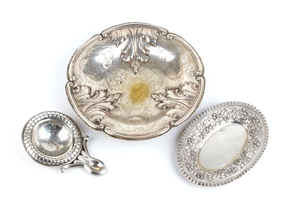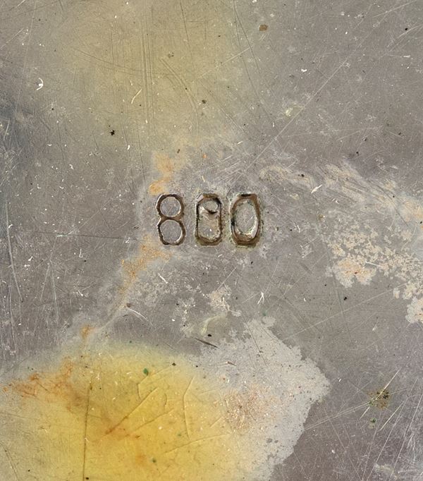 3) vassoio rotondo: 21,5 x 21,5 cm. Argento 800/1000, punzonato "800".