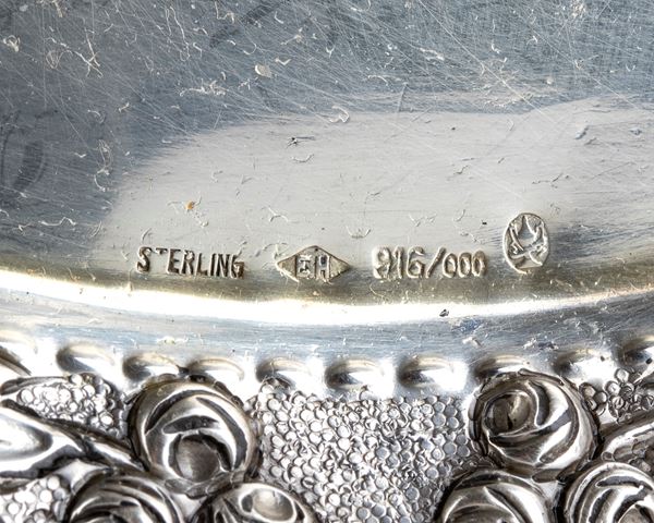 2) dimensioni vassoio ovale: 16,5 x 12 cm. Argento 925/1000, punzonato "STERLING- 916/000 - EH".