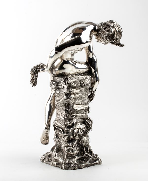 Scultura italiana in argento raffigurante Narciso, Roma, metà XX secolo