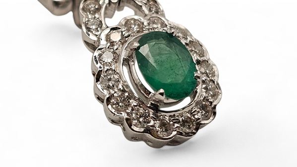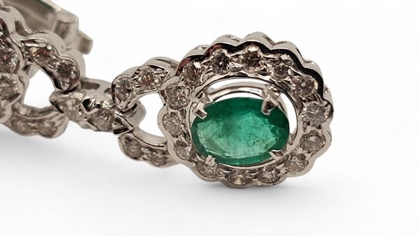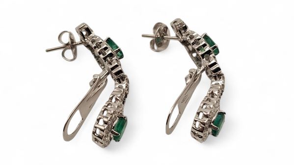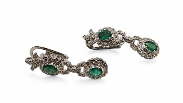 Paio di orecchini pendenti in oro con smeraldi e diamanti