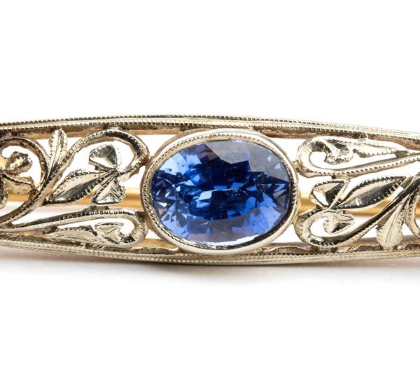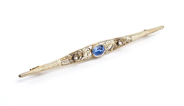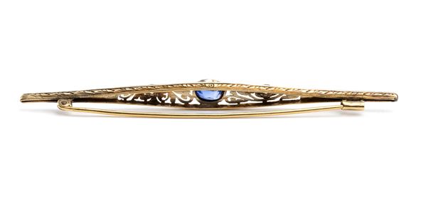 Spilla a barretta in oro e argento con zaffiro, Inizio XX secolo