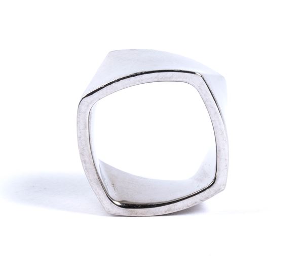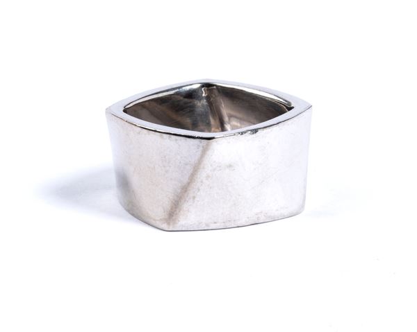 in oro bianco 18k, modellato come una fascia geometrica mossa.