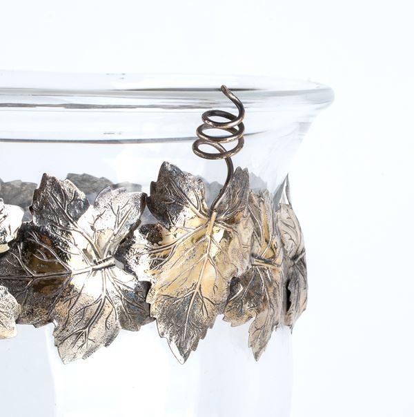 Vaso in vetro con sottopiatto in argento, fine XX secolo