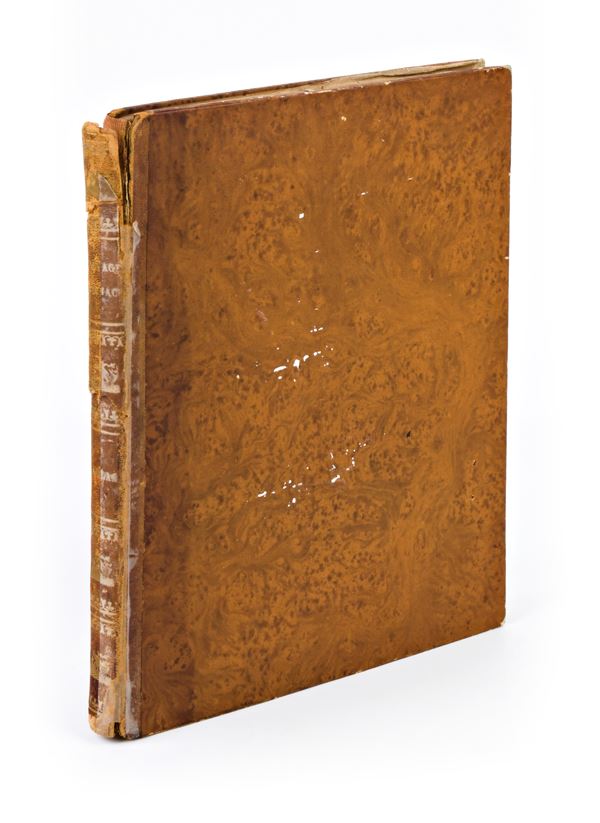 In-4°, mm. 245x195, pp. XXXII, 31 carte di tavole. Completo. Rilegatura coeva in mezza pelle, titoli e fregi in oro al dorso (con difetti e vecchio restauro). Lievi fioriture alle carte.