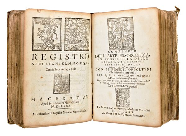 [Esorcismo] Menghi, Girolamo : Compendio dell'arte essorcistica, ... In Macerata, appresso Sebastiano Martellini, 1580. 2 opere in 1 volume.