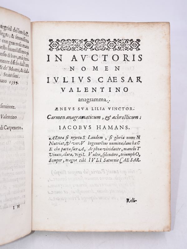 1 vol., in 4°, cm 21x15, p. [56], 203, (1). Legatura coeva in piena pergamena.