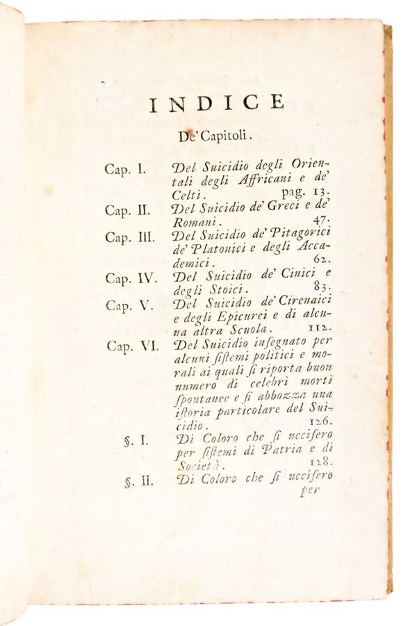 [Filosofia/Morale] Buonafede, Appiano : Istoria critica e filosofica del suicidio ragionato. In Lucca, 1761 Riccomini & Giuntini