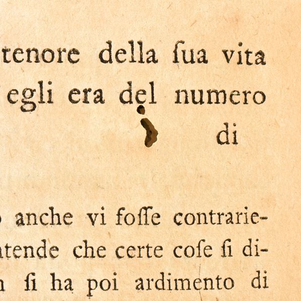 Formato in-8°, mm. 205x135, pp. (4), 289, (1). Completo. Elegante rilegatura coeva in piena pergamena con titoli in oro al dorso. Tagli a spruzzo. Buon esemplare, con lievi fioriture alle carte. Presente ritaglio all'angolo della carta di guardia anteriore. Agatopisto Cromaziano è lo pseudonimo di Appiano Buonafede. Cfr. Melzi, I, p. 22