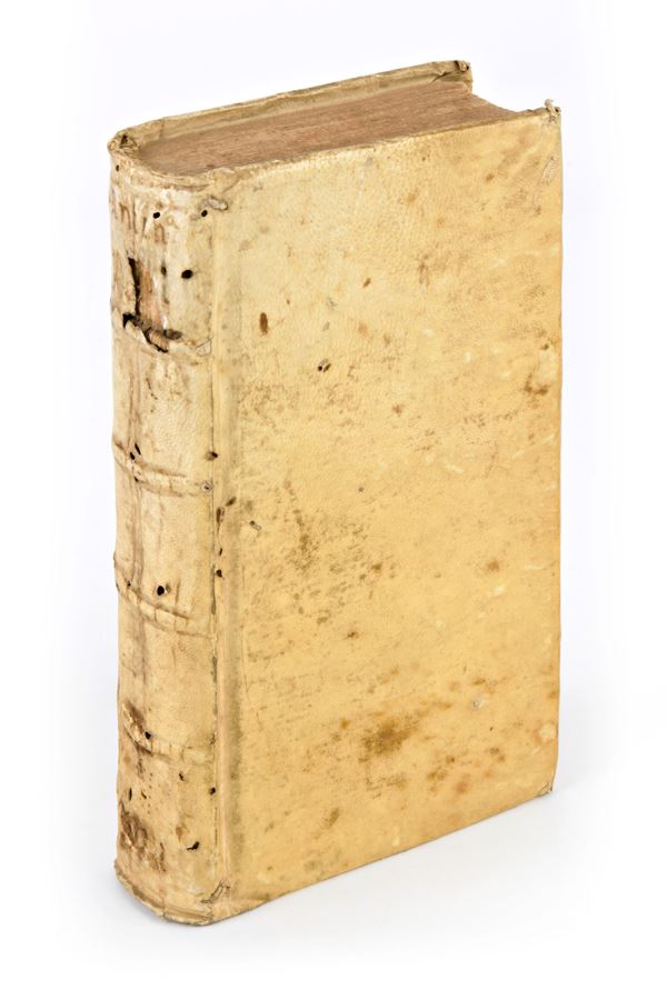 Formato in-12°, mm. 145x80, pp. (24), 396. Solo il Primo volume di due. Rilegatura coeva in piena pergamena con titoli manoscritti al dorso (sbiaditi). Antiporta e carta di guardia anteriore mancanti. Front. con lieve mancanza al margine inferiore, A2 con timbratura sbiadita. Carte pulite, testo nitido, con lievi fioriture alle carte. Note e segni in china antica e a matita nel testo.