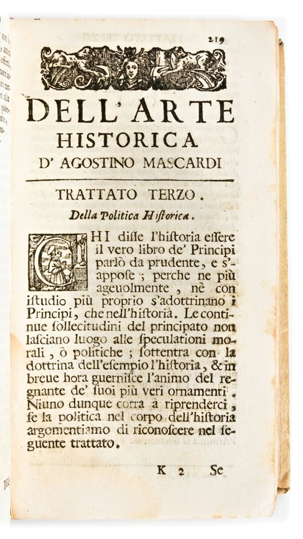 [Storia] Mascardi, Agostino: Dell'arte historica ...Trattati cinque, in questa ultima impressione, con ogni diligenza rivisti, e corretti. Venezia, per Nicolò Pezzana, 1674