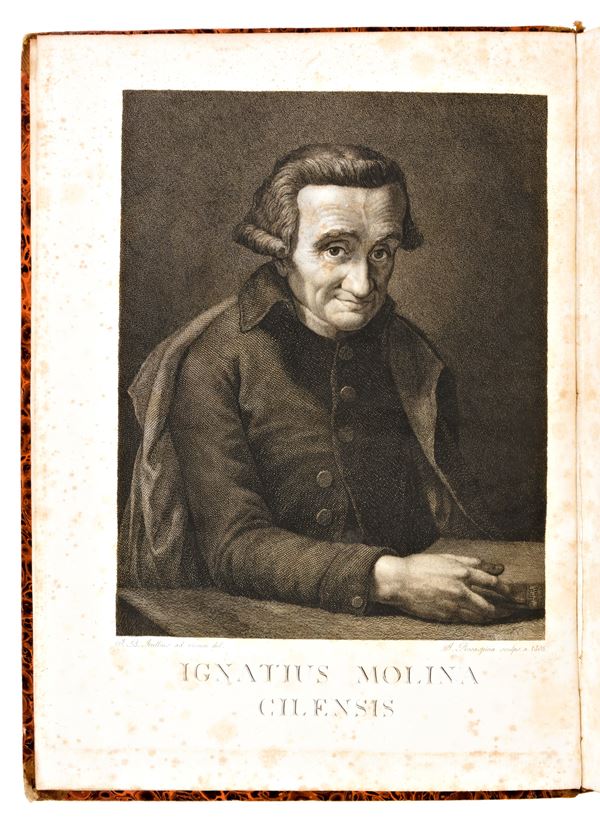 Seconda edizione impressa in Bologna il 1810 (la prima 1782) arricchita con testo e l'aggiunta della mappa ripiegabile. Opera del naturalista e botanico cileno Juan Ignacio Molina (1740-1829), gesuita, divenne curatore della biblioteca della "casa" (sede logistica ed amministrativa) dei Gesuiti di Santiago del Cile. Dopo l'espulsione dei Gesuiti dall'America del Sud da parte del Governo spagnolo, nel 1774, Molina si trasferì a Imola, dove prese ad esercitare l'insegnamento privato. Erudito naturalista già nel Cile, Molina condensò le sue memorie sulla fauna, la vegetazione ed i minerali del paese d'origine in questo famoso e fondamentale Saggio sulla storia naturale del Cile, successivamente tradotto anche in francese ed in spagnolo.
