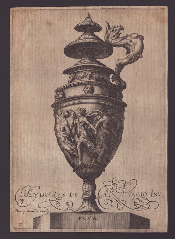 Lotto di sei incisioni controparte da Cherubino Alberti, dal disegno di Polidoro da Caravaggio. Bulino, 226 x 155 mm e 235 x 165 mm.